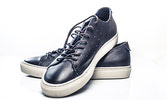 Low-top brushed leather sneakers in blue. Round toe. Tonal lace-up closure. Discrete Logo stamp in blue-tone at tongue and padded heel collar. Knot accents at heel. Rubber sole in white. Tonal stitching. Upper: leather.